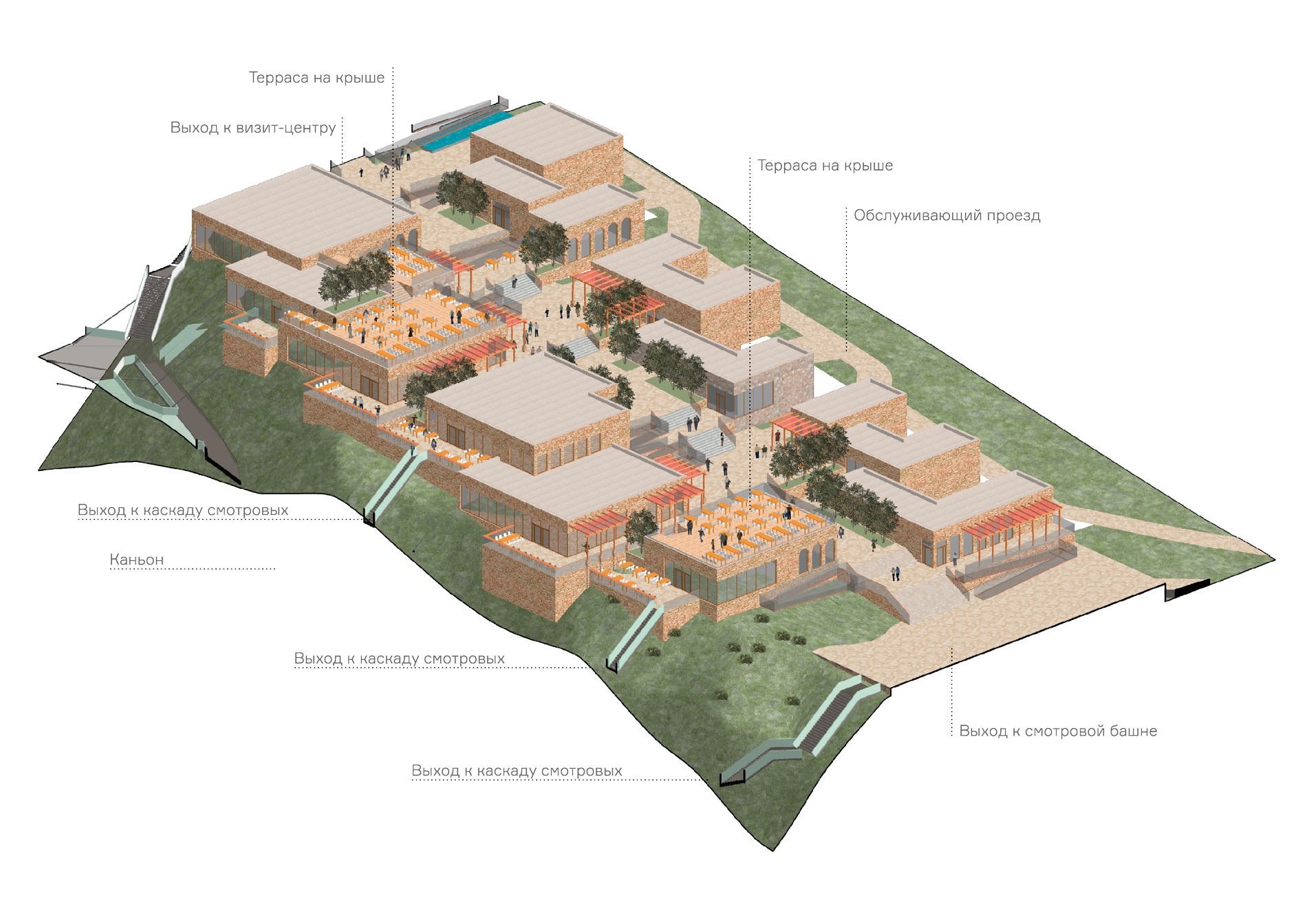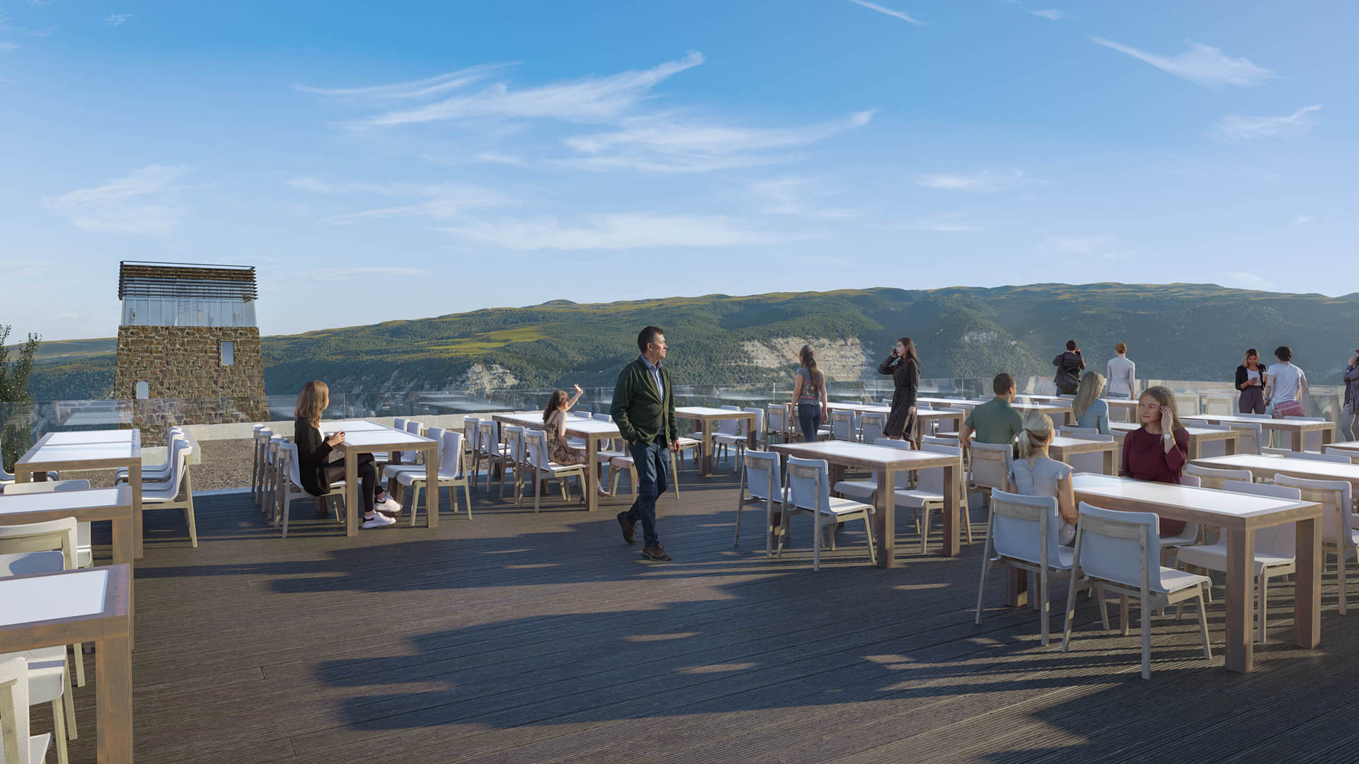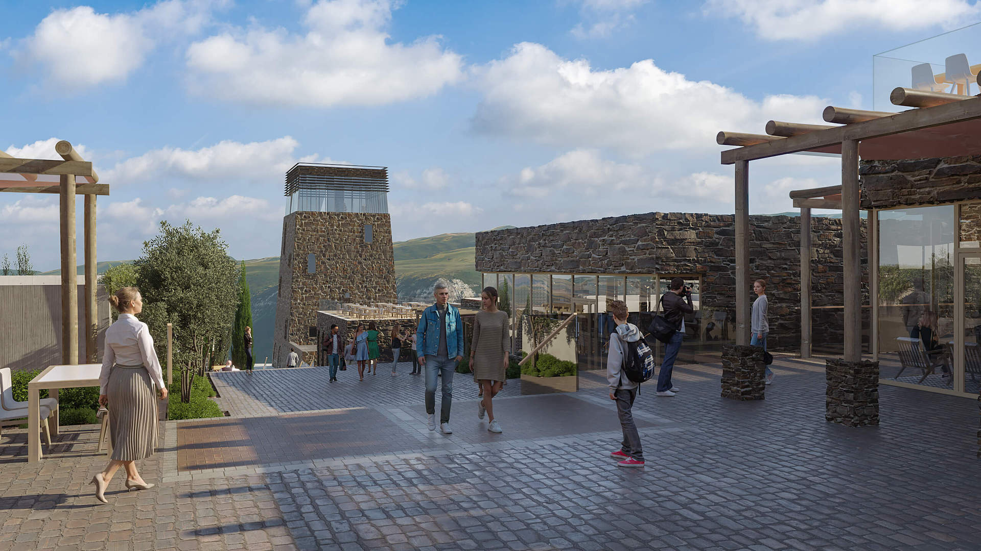 Посетители смогут открыть для себя вкусы национальных кухонь народов Дагестана на открытом фудкорте, вдохновленном дагестанской деревней, и построенном с применением традиционных материалов — камня и дерева. Панорамный ресторан с видом на каньон предложит гостям не только изысканные блюда, но и незабываемый вид.