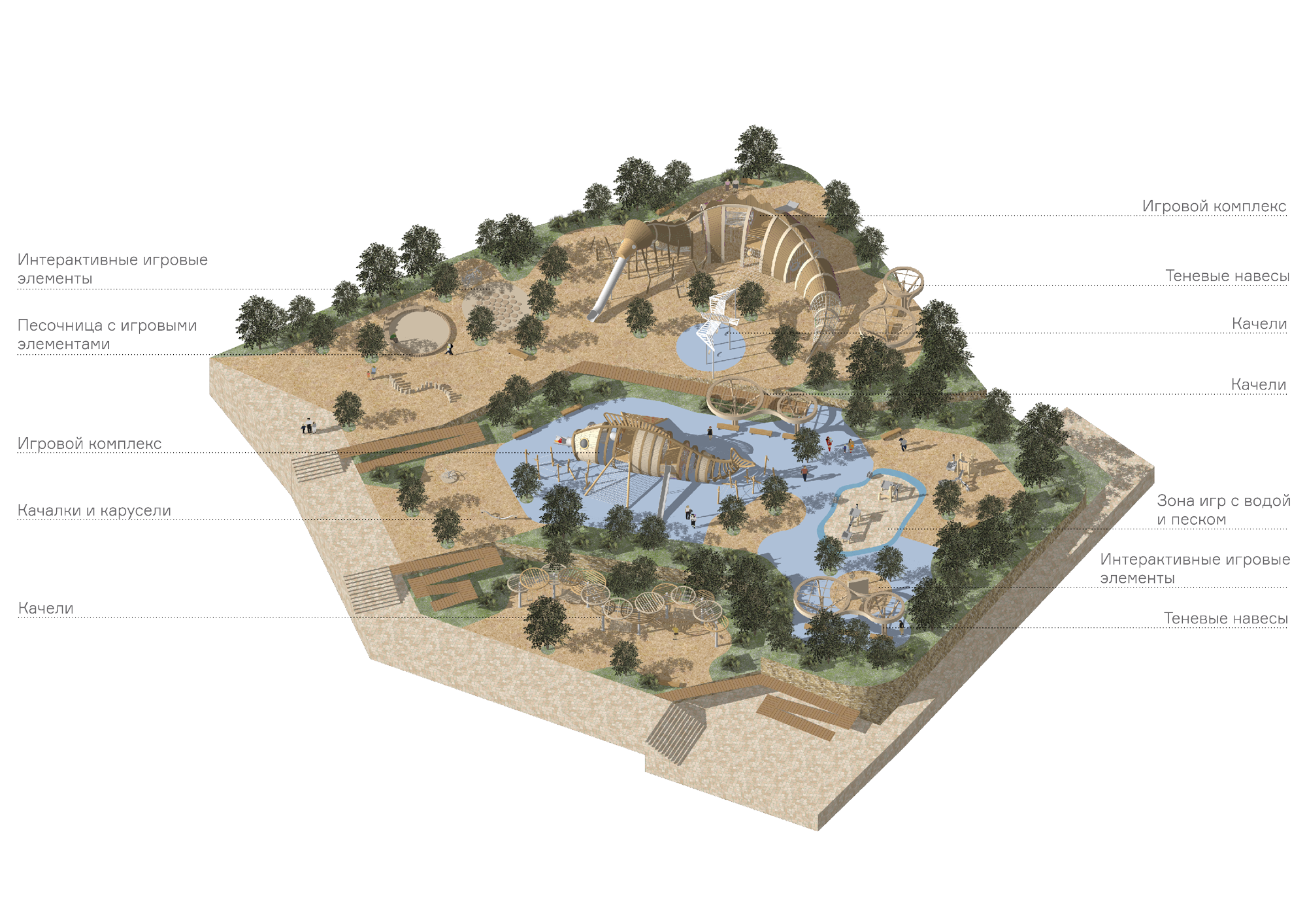 Амфитеатр станет центром культурной жизни центра впечатлений. Площадка станет местом, где случаются концерты, события и театральные перформансы.