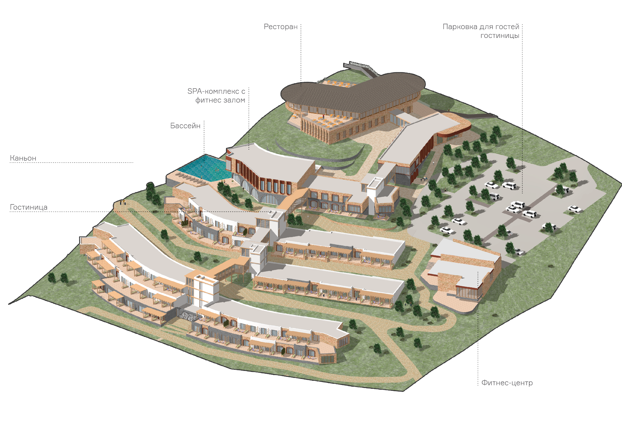 Аттракционы, оранжерея, мечеть, ресторан, гостиница с зоной спа и глэмпинга.